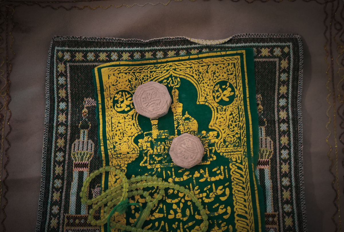 A turbah is a small piece of natural earth, usually clay, used as a surface for sujood.